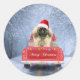 Pekingese Dog in Snow sitting in Christmas Truck Classic Round Sticker