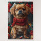 Add some holiday cheer with this charming design featuring a kawaii-style dog in a cozy sweater. Sitting joyfully by a fireplace adorned with stockings, the scene is complete with colourful presents and garlands, bringing warmth and festive vibes. The soft, playful colours capture the coziness of the holiday season, making it a delightful way to celebrate the holidays with a joyful pup at the heart of the scene.