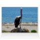 En vedette est un pélican sur un rocher de plage qui a tourné en fonction de ce que vous voulez LOOK.