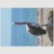 Pictured with a annoyed look is a pelican at the beach on a rock