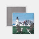 Pemaquid Lighthouse and two adirondeck chairs on the lawn along the coast of Maine.