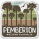 Pemberton Tall Trees in retro vintage arch design featuring silhouettes of the forest.