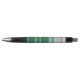 Stripes in horizontal bands in single crochet, around barrel of pen. White with thin green (2 shades) and grey-green lines on top, broad band of dark er green at bottom. Personalize name in white on bottom band.