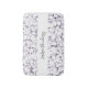 A modern, abstract bathmat in purple pen strokes.