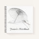 Pencil drawing of Umbrella and Artist's hand on personalized sketchbook cover. Customized Sketchbook with Your Name in script. You could even add a photo. Blank pages or lined.