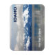 Looking east from Sandpoint, ID across Lake Pend Oreille (pond oh-ray) on a winter day; snow-covered mountains in the distance. Ice has formed at the shore and extends part way across the lake. Blues and grays are the predominate colors. Customizable text reading "IDAHO" also appears; and there is an additional place to add more text.