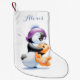 This is truly a one-of-a-kind Christmas stocking! Featuring a Cj's Safari original design of a penguin hugging her teddy bear, with a customizable name section, this stocking is absolutely unique and perfectly adorable!