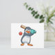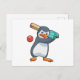 Penguin at Cricket with Cricket bat Postcard