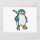 Penguin at Ice hockey with Ice hockey stick Postcard