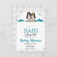 Cute Animals. Penguin Baby Shower Invitation with plaid background.