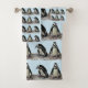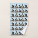 This bath towel set features a repeating abstract pattern of adorable African Penguins standing on a rocky ledge. They are aquatic, flightless birds whose wings have become flippers. Each has a black stripe and black spots on the chest. The pattern of spots is unique for every penguin, just like human fingerprints.