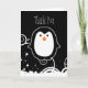 Blank thank you card template featuring a cute penguin graphic and bold black and white swirls and curly cues. Leave blank for you own handwritten expression or add your own text.