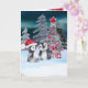 Penguin Christmas Tree Scene - a very cute Holiday Card from Ricaso featuring two little penguins in front of a Christmas tree adorned with red baubles and a poinsettia flower in a forest with snow