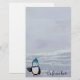 Graphic illustration of a penguin keeping warm drinking a cup of Café au Lait. Add your name or message for a unique gift.