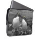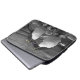 The sleeve is made of nice feeling material and seems very durable. I'm not sure how easy it'll be to clean, but the construction seems sound and the fabric is quick thick. I also like the double zipper. The printing is lovely and appears durable. The white on black contrast is nice, and the design very elegant.
