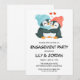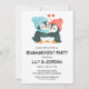 Penguin couple hugging cartoon engagement invitation