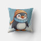 Penguin Cute Kawaii Brown Cap Print Throw Pillow