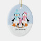 Customizable Christmas ornaments featuring an adorable family of penguins.