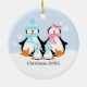 Customizable Christmas ornaments featuring an adorable family of penguins.