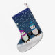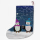 Graphic illustration of cute penguins on a cold, winter night sharing a cup of cocoa. You can customize this stocking with your personal message. Brighten up the holidays with this adorable stocking.
