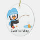 Penguin Ice Fishing Ceramic Ornament