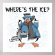 A penguin dressed in a blue coat, hat, and scarf carries her ice skates and asks "Where's The Ice?". This cute penguin ice skater design on T-shirts, cards, mugs, tote bags, and other items is perfect for figure skaters!