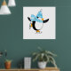 Penguin Ice Skating with Blue Hat and Scarf Illustration Poster