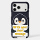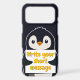 Penguin illustration holding customizable sign: Write your short message