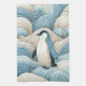 This design showcases a serene penguin at the centre of an ornate aquatic dance, surrounded by waves crafted in the intricate style of Japanese woodblock prints. The soothing palette of blues and creams captures the tranquillity of the ocean, while the swirling lines and patterns convey movement and depth. This piece is a modern take on traditional art, perfect for those who appreciate the fusion of cultural aesthetics with wildlife themes. It is an inviting blend of calm and craftsmanship, ideal for a space seeking a touch of elegance and peacefulness.