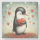 A adorable little penguin and hearts.