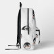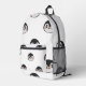 Backpack with a very cute penguin design, white with a pattern of penguin faces. The penguins are in classic colors of white, black, and orange, with happy expressions. Front zippered pocket and black top handle for easy carrying. On the side of the backpack, there is a mesh pocket for holding water bottles. Perfect backpack for school or hiking, thanks to its cheerful and functional design!