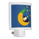 The night light looked as pictured. The colors are nice for a baby's room. I bought it for my new grandson. It has a warm glow when on. I am very pleased with the product and would recommend the night lights. did not have any printing.