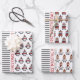 Penguin, panda, bear and stripes Wrapping Paper Sheets. One sheet displays a cute pattern of penguins and stripes. The second features a panda pattern and the third a bear. There also is the text "Merry Christmas" in red on a white band on all sheets. Personalize it with your text.