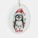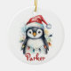 Celebrate the season with this adorable personalized penguin Christmas ornament! Featuring a watercolor-style penguin wearing a Santa hat and wrapped in colourful holiday lights, this ceramic keepsake includes your child’s name in festive red script. A perfect addition to any Christmas tree, this ornament makes a sweet gift for kids, grandkids, or baby’s first Christmas. A heartwarming way to mark holiday memories for years to come!