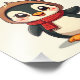 A vintage cute cartoon playful little baby pesto penguin wearing reindeer costume, kawaii. Big anime eyes. The background is solid white