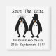 Wedding save the date magnet penguin design. Customise this wedding magnet with your wedding details. Should you require any help with customising then contact us through the link on this page, Penguin design personalised wedding save the date magnet