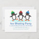 Penguin Trio Boys Ice Skating Birthday Party Invitation