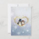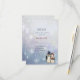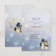 Sweet Wedding RSVP features cute Penguin bride and groom in their wedding attire with winter snowflake blue and white background with a touch of purple. . Back of card in matching snowflake pattern and bride and groom penguins in a gold heart. Replace the date here with the correct wedding date. You may also customize the other RSVP text if you wish. Matching items available on other products in my store.