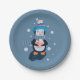 Penguin with Hot Cocoa Blue Holiday Paper Plate