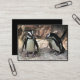 This artist trading card features two adorable African Penguins standing on a rocky ledge. They are aquatic, flightless birds whose wings have become flippers. Each has a black stripe and black spots on the chest. The pattern of spots is unique for every penguin, just like human fingerprints. They have pink glands above their eyes and pink and black feet.