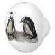 This ceramic door knob features African Penguins standing on a rocky ledge. They are aquatic, flightless birds whose wings have become flippers. Each has a black stripe and black spots on the chest. The pattern of spots is unique for every penguin, just like human fingerprints. They have pink glands above their eyes and pink and black feet.