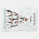 This kitchen towel is perfect for the holidays. Penguins stand on each others shoulders to form a Christmas tree. They are all dressed differently. It's a fun colourful, comic illustration. Blue stylized snowflakes decorate the background. The text reads "Fa la la la laaaa", but you can personalize it to say anything you want!