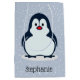 Penguins Design Gift Bag on snowy blue background with optional personalization.
