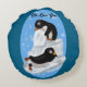 Adorable penguins napping on an iceberg while snowflakes fall around them. Can personalize this cute burp cloth with baby's name. Blue, white, and black.