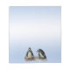 Each page of this delightful notepad features two adorable African Penguins standing on a rocky ledge against a shimmering blue gradient background. They are aquatic, flightless birds whose wings have become flippers. Each has a black stripe and black spots on the chest. The pattern of spots is unique for every penguin, just like human fingerprints. They have pink glands above their eyes and pink and black feet.