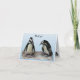 This thank you card features two adorable African Penguins standing on a rocky ledge. They are aquatic, flightless birds whose wings have become flippers. Each has a black stripe and black spots on the chest. The pattern of spots is unique for every penguin, just like human fingerprints. They have pink glands above their eyes and pink and black feet. Two more little penguins are inside. The text can be customized for your special occasion.