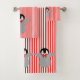 Penguins with Red Polka Dot Ties on Red Stripes Bath Towel Set