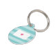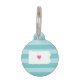 Let your furry friend show some home state pride with this cute Pennsylvania pet ID tag. Design features a white silhouette map of the state of Pennsylvania with a pink heart inside, on a tone on tone turquoise stripe background. Add your pet's name and contact information to the back in white lettering on an aqua background.