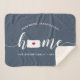 Show some home state pride with this cute rustic blue throw blanket featuring "home" in white calligraphy script lettering with a silhouette map of the state of Pennsylvania standing in for the letter "O." A red heart illustration inside the state map completes the design; you can change the position of the heart to your home city by opening the design tool and dragging the heart shape to your favourite spot. Personalize with your home city, family name and year established to create a perfect and memorable housewarming gift or addition to your new home.