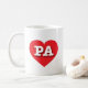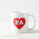 This mug features a vibrant red heart containing the bold, white, upper case letters PA, the official abbreviation for Pennsylvania, the keystone state.